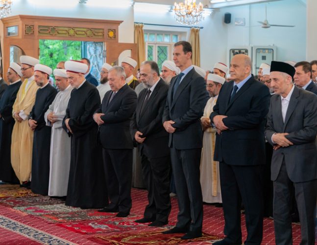أدى السيد الرئيس بشار الأسد اليوم صلاة عيد الأضحى المبارك في رحاب جامع الروضة بدمشق.