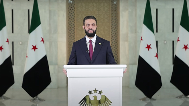 وأضاف الرئيس الشرع إنه على الجميع أن يتفهم أن هذه اللحظة تتطلب وحدة الصف الكامل من أجل تجاوز ما نمر به جميعاً والحفاظ على بلدنا وأرضنا.