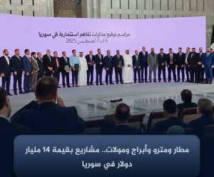 بحضور الرئيس الشرع… توقيع مذكرات تفاهم استثمارية مع شركات دولية بقيمة 14 مليار دولار تطال ثماني محافظات