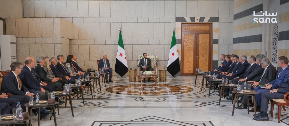 استقبل الرئيس أحمد الشرع، يوم الأول من تشرين الأول في قصر الشعب بدمشق، وفداً من رجال الأعمال والمستثمرين الفرنسيين، وتناول اللقاء سبُل تعزيز التعاون في مجالات الطاقة والطيران والسياحة والتحول الرقمي وإدارة الموارد، وغيرها من القطاعات الحيوية.