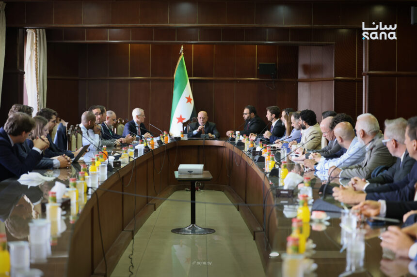 بحث وزير الاقتصاد والصناعة نضال الشعار مع وفد ضم أكثر من 30 مستثمراً من جنسيات خليجية وأمريكية وأوروبية؛ سبل تعزيز التعاون الاقتصادي والاستثماري في سوريا.