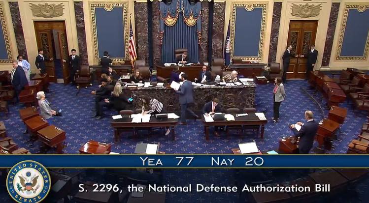 وأُقرت نسخة مجلس الشيوخ من الموازنة بنتيجة تصويت بلغت 77 مؤيدا مقابل 20 معترضا، وتتضمّن المادة نصا صريحا يقضي بإلغاء قانون قيصر “دون قيد أو شرط” بحلول نهاية العام الجاري.