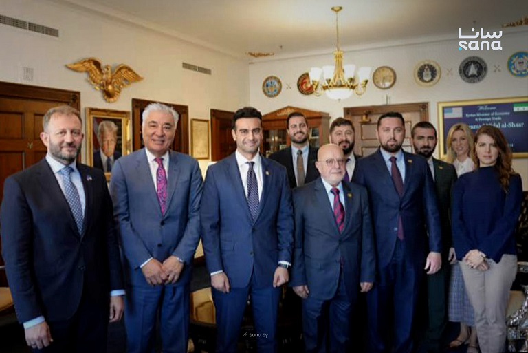 بحث وزير الاقتصاد والصناعة نضال الشعار، مع عضوي الكونغرس الأمريكي إبراهيم حمادة وجو ويلسون، وعدد من ممثلي المؤسسات البحثية والاقتصادية الأمريكية، آليات دعم المشاريع الاقتصادية في سوريا، وتعزيز مشاركة الشركات الأمريكية في السوق السورية.