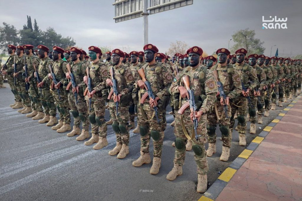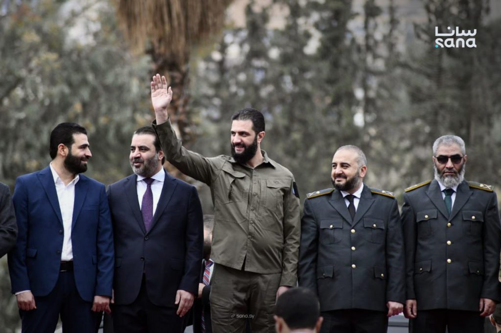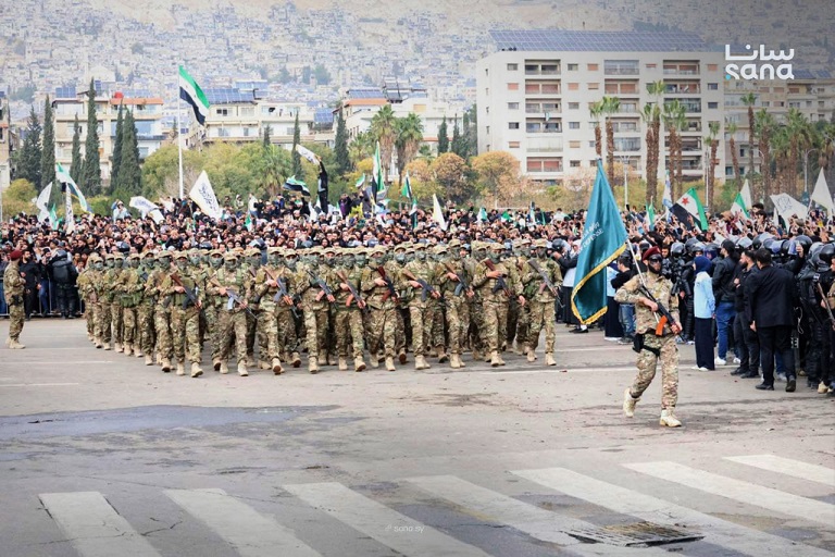 حضر الرئيس أحمد الشرع برفقة عدد من الوزراء والقادة العسكريين والمسؤولين العرض العسكري الذي تنظمه وزارة الدفاع بمناسبة ذكرى النصر والتحرير على أوتوستراد المزة بدمشق.