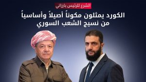 وأعرب بارزاني عن تقديره لهذه الرؤية، ودعمه لتطلعات السوريين في بناء دولة جامعة لكل أبنائها، مع الاتفاق على أهمية استمرار التنسيق والتشاور بما يخدم المصالح المشتركة، ويعزز السلم الأهلي.