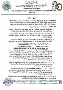 وقالت منظمة المركز العربي لدراسات المناطق الجافة والأراضي القاحلة في بيان صحفي :