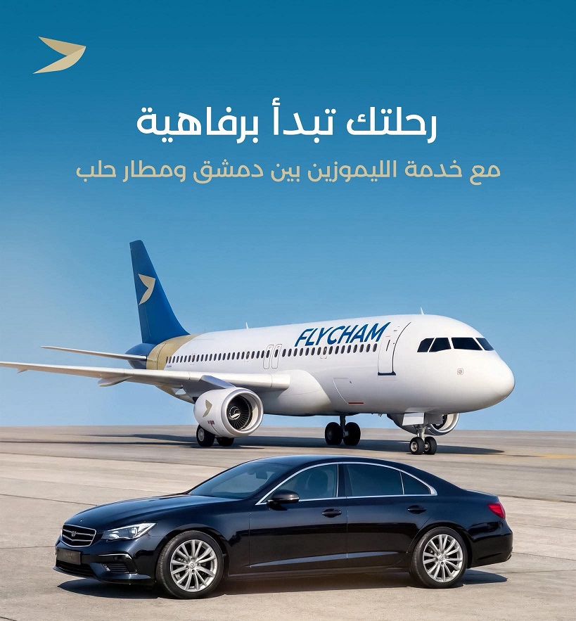 “فلاي شام” تطلق خدمة نقل مجاني بالليموزين لمسافري درجة رجال الأعمال بين دمشق ومطار حلب الدولي وبالعكس
