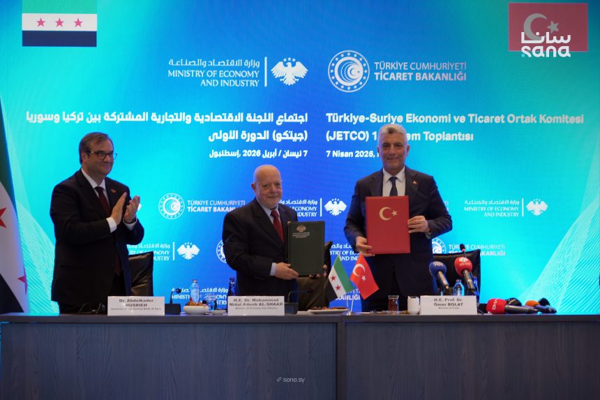 وقعت سوريا وتركيا اليوم اتفاقية تعاون اقتصادي وتجاري، وذلك في ختام أعمال الاجتماع الأول للجنة الاقتصادية والتجارية المشتركة بين البلدين في مدينة إسطنبول.